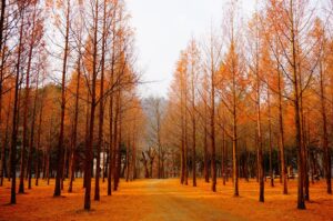 Altra meta molto suggestiva in questa stagione è l’isola Nami che anch’essa si veste di colori ramati. Le grandi sequoie, perfettamente allineate e affettuosamente chiamate “i fossili viventi dell’isola”, creano un paesaggio da cartolina.