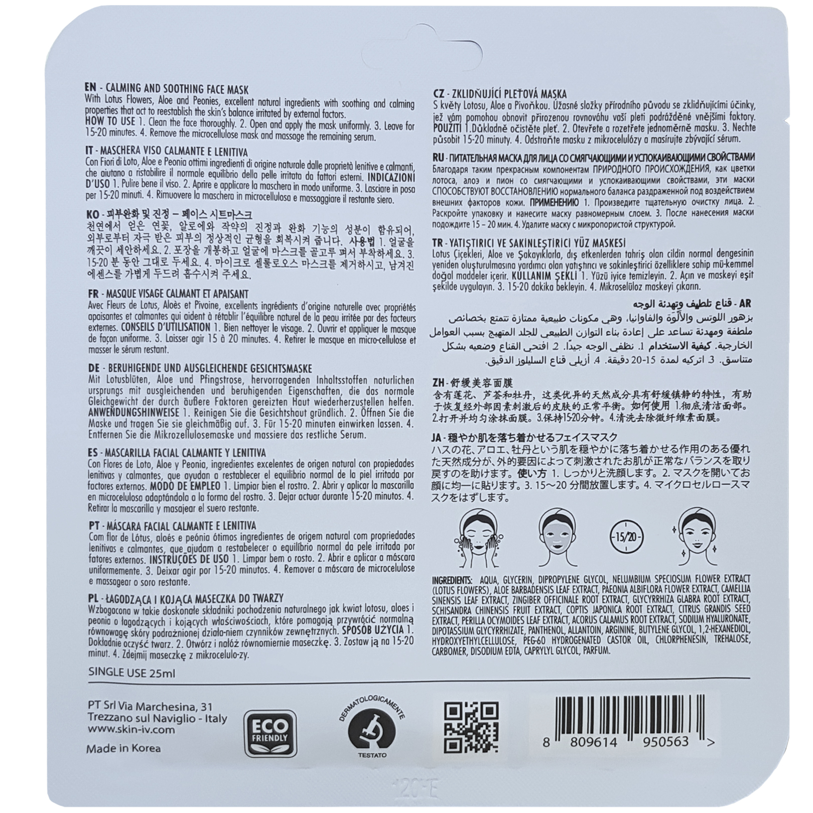 • Maschera monouso in microcellulosa per un comfort cutaneo naturalmente assicurato e una perfetta distribuzione uniforme del siero (scopri di più)